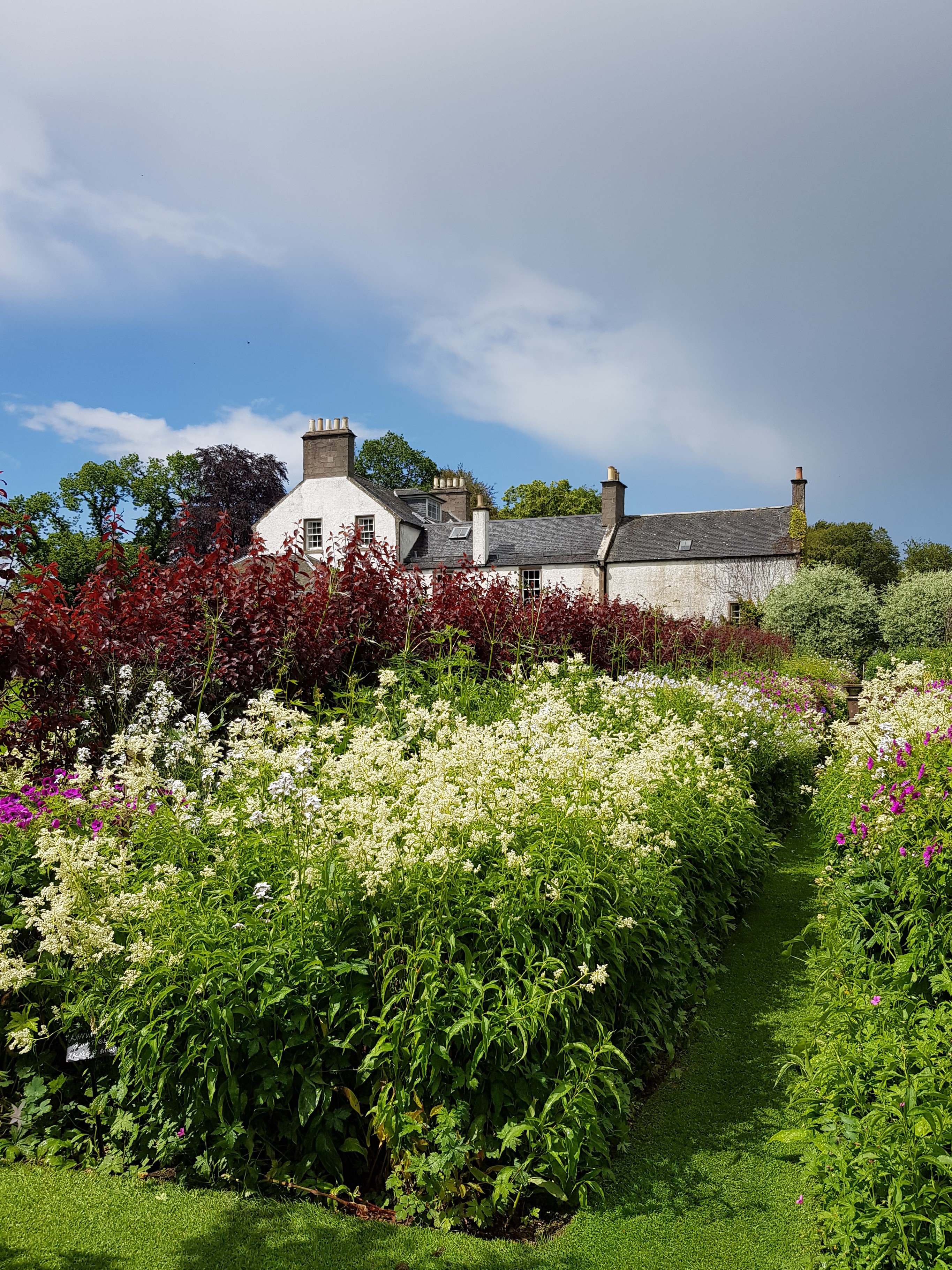 Unsere Reise führte uns durch eine Vielzahl wunderbarer schottischer Gartenanlagen. Ob Schlossgarten oder Park, kleiner oder großer Privatgarten – eins hatten alle gemeinsam: die gelungene Kombination aus formal angelegten Beeten und üppiger Staudenbepflanzung. Hier fallen die oft mannshohen Stauden auf, die eine ganz besondere Präsenz haben. Durch ihr Volumen und auf Augenhöhe geben sie dem Garten eine ganz besondere Ausstrahlung. Diese wird durch gepflegte Rasenflächen und Wege, durch alten Baumbestand, durch die alten Felssteinmauern und historischen Gebäude perfekt ergänzt. Zusammen mit dem Spiel aus Sonne, Wolken, Licht und Schatten, kann man sich daran kaum satt sehen.
