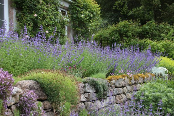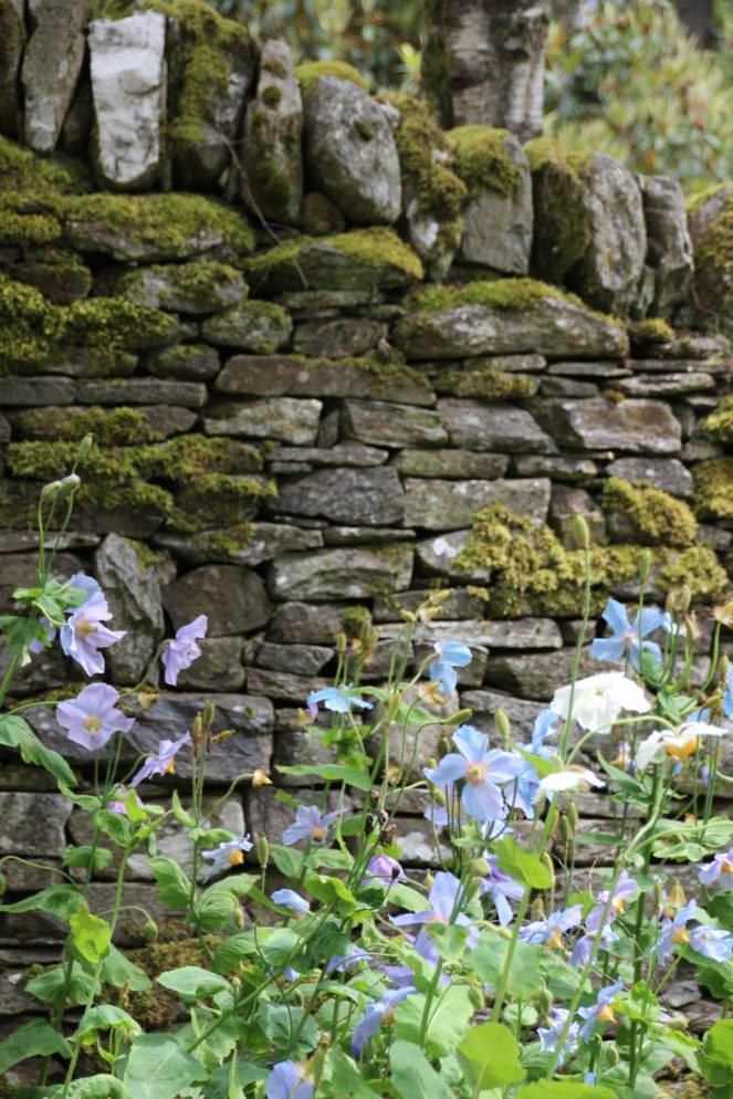 Alte Feldmauern prägen das Landschaftsbild, wenn man durch die schottische Landschaft reist. Sie sind nach einer bestimmten Technik aus den Feldsteinen der Umgebung aufgeschichtet und zwar ohne Mörtel oder anderes Bindematerial. Sie dienen nicht etwa als Einzäunung für die vielen Schafe, diese laufen frei herum. Es sind alte Feldsteine, die einfach an die Seite geräumt wurden und damit eine Nutzung als Mauer erfuhren. Natürlich werden sie in vielen Gärten auch bewusst als Trennung von Gartenräumen, zum Abfangen von Böschungen oder als Brücken genutzt. Oft sind sie wunderschön mit Moosen und Farnen bewachsen und bieten vielen Kleintieren ein sicheres Zuhause.