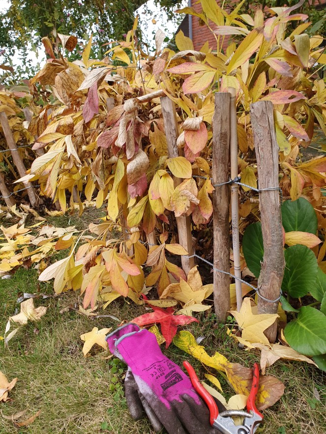 Beim Pflanzen im Herbst haben die Wurzeln genügend Zeit einzuwachsen und die Pflanzen können dann schon im nächsten Frühjahr kräftig austreiben. Auf die Blütenpracht muss man dann aber möglicherweise noch ein weiteres Jahr warten. Was daran liegt, das Pfingstrosen am liebsten in Ruhe gelassen werden und sich nach dem Pflanzen erst eingewöhnen müssen. Ich kenne alte Staudenpfingstrosen in Bauerngärten, die dort am selben Ort seit mehreren Generationen üppig blühen.