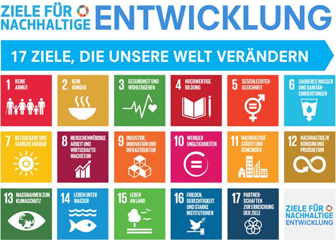 Die 17 Ziele für nachhaltige Entwicklung (Sustainable Development Goals, SDGs) sind politische Zielsetzungen der Vereinten Nationen (UN), welche weltweit der Sicherung einer nachhaltigen Entwicklung auf ökonomischer, sozialer sowie ökologischer Ebene dienen sollen. 193 Länder haben sich dieser Agenda angeschlossen.