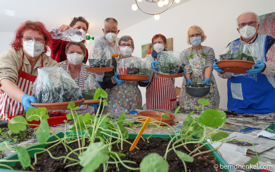 Der Garten – die Gartentherapie Der gezielte Einsatz der Natur und der geplante Umgang mit Pflanzen fördert das Wohlbefinden und die Erinnerung, stärkt das Selbstbewusstsein und die Selbstwirksamkeit durch das Erleben eigener Kompetenzen. Alle Sinne werden durch die Beschäftigung in und mit der Natur angeregt, motorische Fähigkeiten werden ressourcenorientiert genutzt und gefördert. Das zielgerichtete Tun und Handeln leitet den Focus weg von den eigenen Defiziten. Verantwortung wird übertragen und gemeinschaftlich umgesetzt. Wie stolz sind wir, wenn uns etwas gelingt und aus einem Samenkorn z. B. ein stattlicher Kohlkopf wächst. Oberstes Ziel ist, Freude zu schaffen und das gelingt mit der Gartentherapie auf ganz natürliche Art und Weise.
