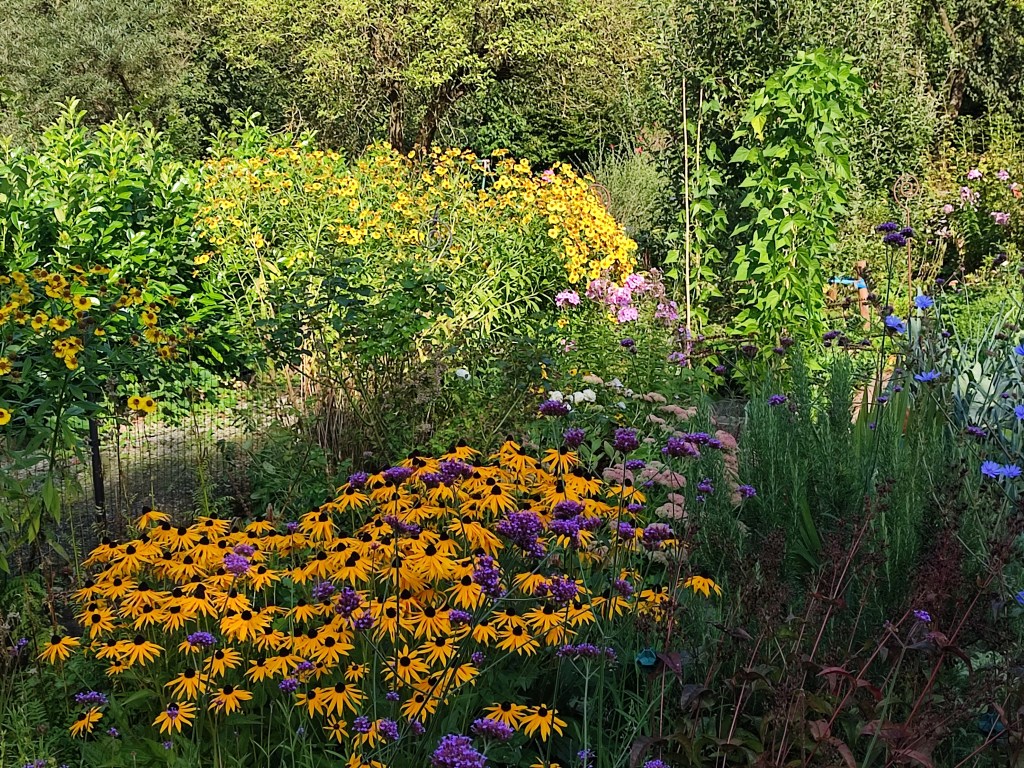 Meinen Versuch mit der wilden Karde werde ich auch nicht wiederholen, die Sämlinge kommen aus allen Ritzen. Besonders schön in den Rosenbüschen. und die Pfahlwurzeln sind auch nicht ohne.